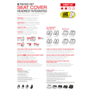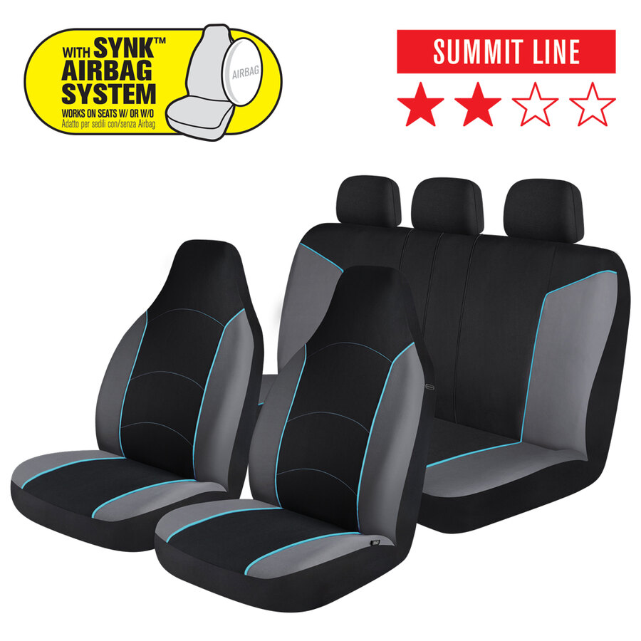 Set coprisedili universali. Adatto a sedile con schienale unico alto con poggiatesta integrato & posteriore a panca. Massima protezione ai vostri sedili rinnovando l ook e aspetto. Schienale divisibile con zip. Con imbottitura in spugna. Lavabile a mano 30°. Utile per proteggere il sedile da fuoriuscite di liquidi, macchie, sporco, peli di animali, lacerazioni e molto altro ancora... Materiale di alta qualità con speciale gomma piuma per garantire durata, protezione e comfort. Progettato con la tecnologia SYNK, consente l'apertura degli airbag