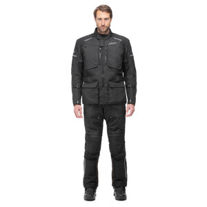 Giacca in tessuto. 4 stagioni. Interno removibile, imbottito e impermeabile. Esterno in tessuto armaturato, aree rinforzate in materiale rip-stop ed inserti elastici. Collo con margine in neoprene, interno in microfibra e chiusura frontale con velcro. Chiusura frontale con zip e dettagli in velcro. 2 tasche su torace: chiusura zip. 2 tasche al fondo: chiusura velcro. Utility pocket posteriore con chiusura velcro. Multi regolazioni su maniche, vita, fondo e polsi. Dettagli in materiale stretch su giro manica e schiena. Inserti elastici su gomito. Aperture di ventilazione su area torace e schiena. Dettagli riflettenti su maniche e busto. 2 Tasche interne con velcro. Tasca interna impermeabile con zip. Zip di connessione su punto vita per collegare la giacca al pantalone AXO (Always). Certificato EN17092:2020-Livello: Classe A. Prot. EN1621-1 di Livello 1 Type A su spalle e gomiti. Predisposizione paraschiena EN1621-2 liv. 2 (paraschiena non incluso L 1903888 L>5XL, M 1903889 S>M)