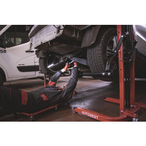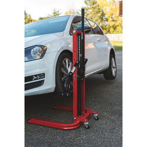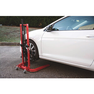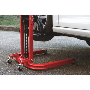 Colonna di sollevamento mobile manuale con una capacità di carico di 810 kg, progettata per facilitare interventi su veicoli in officine e garage. Capacità di sollevamento: 810kg. Altezza di sollevamento: da 70 a 750mm. Struttura: tubolare in acciaio robusto. Sicurezza: dotata di 2 perni di sicurezza. Sistema di sollevamento: a cremagliera reversibile. Mobilità: 2 ruote fisse e 2 ruote pivotanti in acciaio. Dimensioni: Lunghezza 810mm x Larghezza 750mm x Altezza 1250mm. Peso: circa 62 - 63kg. È particolarmente utile per operazioni come la sostituzione dell'impianto di scarico o interventi sul cambio. Grazie alla sua piastra di sollevamento rimovibile, può anche essere utilizzata per sollevare e spostare carichi fino a 810 kg, facilitando il caricamento in veicoli con soglie elevate
