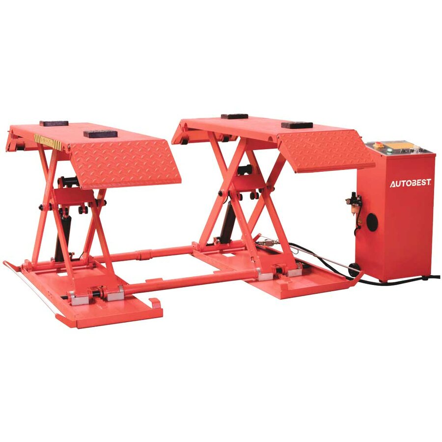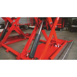 Sollevatore elettroidraulico mobile estremamente robusto grazie ai cilindri e ai bracci in acciaio. Ideale per gommisti, carrozzerie e altre officine di riparazione. La sua altezza di sollevamento (1m) lo rende ideale per lavori su ruote o componenti del telaio, nonché per il cambio dell'olio. Le piattaforme possono essere estese bloccando le rampe di accesso in posizione orizzontale. La sua posizione minima di sollevamento di 110mm lo rende adatto a veicoli di altezza ridotta. Alimentazione: 230V (corrente alternata) - 50 Hz, potenza 2200W. Alimentazione pneumatica: 6 - 8 bar. Dimensioni in posizione bassa: 1940x1960x110mm. Dimensioni in posizione alta: 1940x1960x1000mm. Grado di protezione: IP54. Non adatto all'uso esterno. Peso netto: 495kg