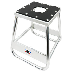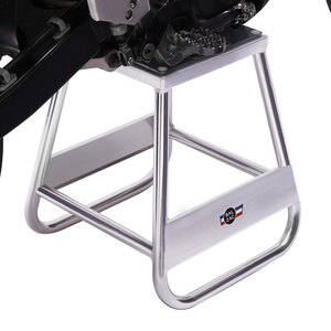 Solleva moto in alluminio. Comodo per lavorare sulla moto o parcheggiarla. Realizzato in alluminio resistente ma leggero. Ideale per riparazioni, manutenzioni o pulizia. Peso massimo supportato 200kg. Foro di scarico dell'olio rotondo e largo per una facile manutenzione. Tappetino superiore in gomma resistente per evitare danni/graffi. Resistente a olio e benzina. La parte superiore da 10x10'' è resistente e tiene le ruote sollevate da terra. Foro di scarico diam. 100mm