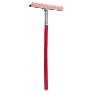 Pulivetro professionale con prolunga in legno. Larghezza 25cm. Supporto in metallo, spugna con rete antinsetti. Impugnatura in metallo 12cm + prolunga in legno 47cm
