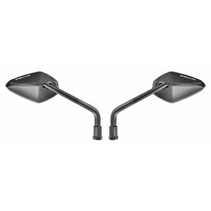 Specchi retrovisori non omologati, universali. Speciale design firmato Barracuda. Hanno la calotta realizzata in ABS caratterizzata da linee forti ed essenziali con uno speciale inserto in alluminio. Sono universali, adatti alla maggior parte delle moto naked