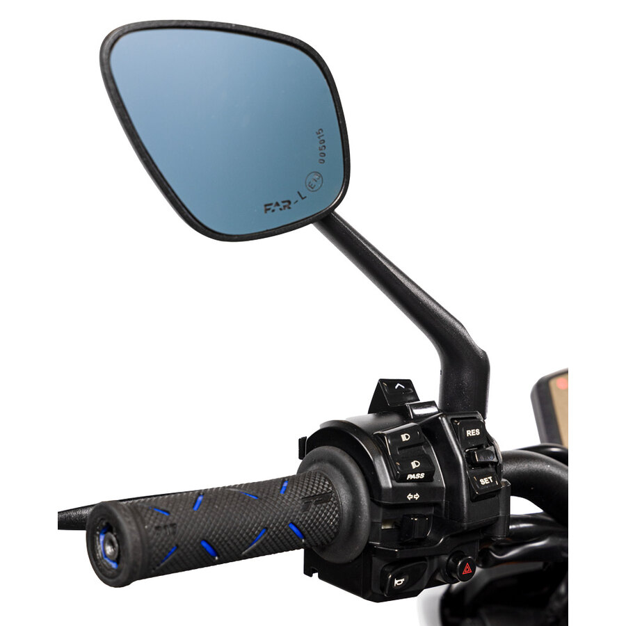 Specchio retrovisore sinistro, attacco al manubrio, universale. Progettato per garantire massima visibilità, design moderno e prestazioni superiori. Ideale per migliorare l'estetica e la funzionalità della tua moto, si adatta perfettamente a qualsiasi esigenza di guida. Realizzato interamente in alluminio per una combinazione perfetta di robustezza, leggerezza e durata. Design pulito e sofisticato grazie a una meccanica nascosta. Profilo ultraflat per migliorare l'aerodinamicità e donare alla moto un look contemporaneo ed elegante. Asta alleggerita: riduzione del peso complessivo per migliorare ergonomia e prestazioni senza compromettere la stabilità. Vetro azzurrato antiriflesso: ottimizza la visibilità riducendo i riflessi per una guida sicura in ogni condizione di luce. Fornito con un kit di viti M8 e M10 x1,25 per un montaggio semplice e sicuro su qualsiasi moto. Omologato: conforme alle normative per un utilizzo legale su strada. Confezione: 1 pezzo