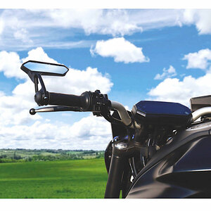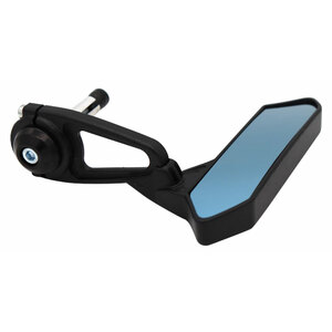 Specchio retrovisore con attacco Bar End. Vetro panoramico dentro sagoma. Realizzato in alluminio e policarbonato, completato con vetro azzurrato antiriflesso. Destro. Misure : lunghezza 144mm. Altezza 120mm. Attacco regolabile expander da diam 13 a 22mm. Confezione: 1 pezzo