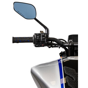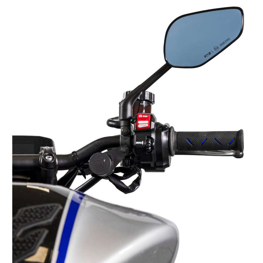 Specchio retrovisore destro, attacco al manubrio, universale. Progettato per chi cerca un accessorio che unisca stile, sicurezza e qualità. Perfetto per ogni tipo di moto, offre visibilità ottimale e un design moderno. Materiale premium: costruzione in alluminio lavorato a CNC con finitura anodizzata nera, per resistenza e un look raffinato. Lunghezza asta 245mm, altezza 160mm, per un campo visivo chiaro e ampio. Vetro antiriflesso: azzurrato e convesso, per ridurre i riflessi e migliorare la sicurezza in strada. Montaggio semplice grazie al kit di viti M8 e M10x1,25 incluso. Omologato: conforme alle normative per un utilizzo sicuro e legale. Confezione: 1 pezzo