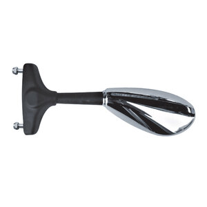 Specchio universale destro, fissaggio alla carena con viti M 6. Larghezza minima tra i punti di fissaggio: 30mm, massima 65mm. Base cromata, braccetto nero. Non omologato