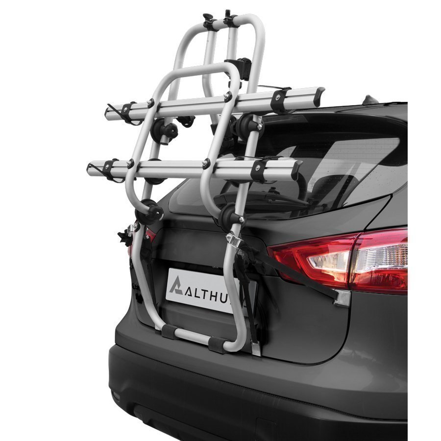Il portabici posteriore per E-Bike Althura è un portabici posteriore ovvero che poggia sul bagagliaio del veicolo ed è in posizione stabile tramite le cinghie collegate sia alla parte superiore del bagagliaio, sia nella parte posteriore e al labbro inferiore del bagagliaio inoltre, per rendere ancora più stabile il portabici, sono presenti le cinghie laterali per il fissaggio ai lati del bagagliaio o del baule.