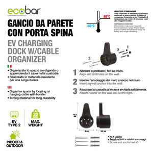 Staffa cavo auto elettrica Gancio da parete con porta spina - ECOBAR ECOBAR