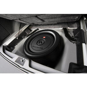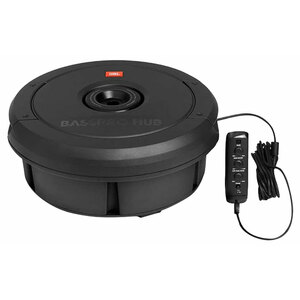 Subwoofer da 28cm. Alimentato con amplificatore da 200 Watt, dedicato per il vano della ruota di scorta. Controllo remoto incluso nella confezione. Cono Woofer in fibra di vetro con rivestimento in gomma. Il cono del subwoofer è progettato per offrire bassi veloci e serrati, profondi con bassa distorsione. Amplificatore RMS da 200W (2ohm) di classe D incorporato. Risposta in frequenza 30Hz-150Hz. Fusibile 30A. Assorbimento massimo di corrente 30A. Assorbimento di corrente di riposo <1.2A. Frequenza di crossover 50Hz-150Hz. Pendenza crossover 24 dB/ottava. Bass Boost 0 - 12dB Variabile @ Fix 50Hz. Sensibilità di ingresso a livello di linea 0,2 V-4V. Sensibilità di ingresso livello altoparlante 0,5 V-10V