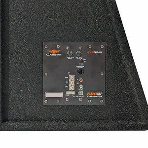 Subwoofer in cassa amplificato, bass reflex. Amplificatore classe AB. Altoparlante da 300mm. RMS power 250W. Max power 500W. Risposta in frequenza 40Hz-500Hz. Impedenza 4ohm. Controllo remoto