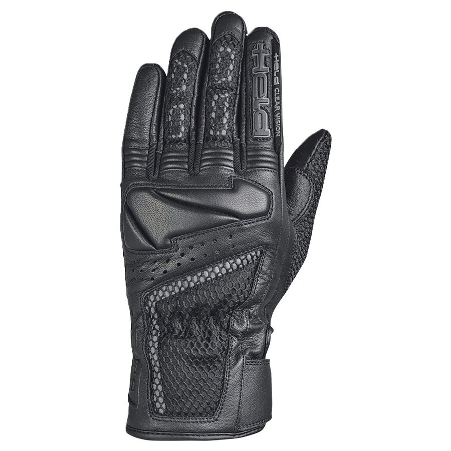 Guanto estivo: leggero e ventilato. Dorso in rete ventilata con finiture in pelle. Palmo in pelle di canguro altamente resistente all'abrasione. Colore permanente e a prova di sudore. Palmo sfoderato. Inserti in pelle elastica sulle dita. Manicotto con chiusura regolabile in velcro. NUDUD: speciale tecnologia conduttiva per un funzionamento preciso con gli smartphone. Infradita traforato per la massima ventilazione e comfort. Tergivisiera. Rinforzo laterale rivestito con Armaprotec. Nocche e dita rivestite con espanso, non offre alcuna protezione speciale per le nocche. Certificato secondo la normativa EN 13594:2015 "guanti di protezione per motociclisti"
