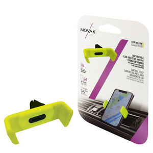 Supporto da presa d'aria universale a clip. Edizione limitata! Si può ruotare di 360° per una visione orizzontale, verticale o angolata. Colorazione giallo fluo per essere facilmente visibile anche al buio. Grazie alla speciale molla è espandibile per adattarsi anche a smartphone con extra dimensioni. Apertura: max 85mm min 56mm
