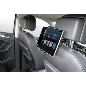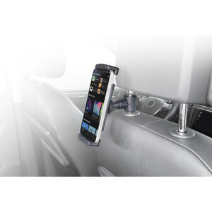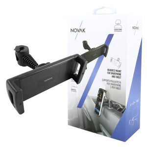 Supporto da poggiatesta per smartphone e tablet. Larghezza regolabile: min 120mm, max 200mm. Regolabile ed inclinabile per una facile regolazione degli angoli di visione. Clip di fissaggio a 4 stadi. Compatibile con aste poggiatesta aventi diametro 10-17mm. Impugnatura stabile con ganascia espandibile a molla per adattarsi a smartphone e tablet di dimensioni extra in modo sicuro. Rivestimento in gomma su entrambi i lati per proteggere i dispositivi dai graffi. Semplice installazione e rimozione dal poggiatesta