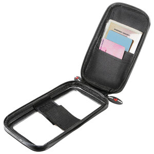 Custodia universale per smartphone (massime misure interne 90x175mm). Segue il più possibile la forma del telefono, spessore ridotto per renderla meno ingombrante. Foro passacavo per l'alimentazione elettrica. Pellicola frontale trasparente per consentire l?utilizzo del touch screen, fissata tramite termosaldatura per aumentare la resistenza alla pioggia. Zip laterali impermeabili. Tasche porta tessere Specifica per supporti del sistema OPTI (attacco non incluso vedi esempio nostri codici 1614198, 1614211, 1614200, 1614212, 1614199)