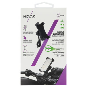 Supporto smartphone da manubrio. Kit completo di base e staffa. Compatibile con manubri di diametro compreso 18>27mm. Regolabile e inclinabile. Rilascio tramite bottone. Staffa da manubrio in lega di alluminio resistente e robusta. Cuscinetto in EVA antiscivolo per evitare vibrazioni e graffi