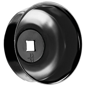Chiave svita filtro a tazza per filtro olio. Per filtro diam. 73mm con 14 lati. In acciaio con finitura elettroforetica. Idonea per chiave dinamometrica attacco 3/8". Per serraggio corretto secondo indicazioni del costruttore. Ideale per serrare ed allentare il filtro olio
