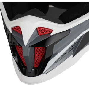 Calotta esterna in fibra di vetro. Le 18 prese d'aria presenti nel casco garantiscono un eccellente flusso di aria così da ottenere un'ottima traspirabilità. Cinturino di chiusura a doppio anello. Calotta compatibile con Neck Brace (non incluso). Interni soft touch ad alta evacuazione di umidità. Interni removibili, anallergici e lavabili. Frontino regolabile e magnete integrato al centro. Peso 110g +/- 50g in tg M Omologazione ECE/ONU 22-06