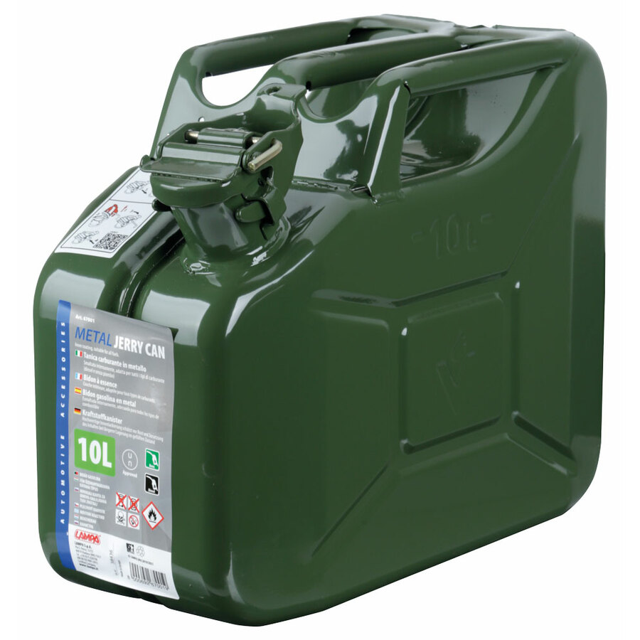 Tanica in metallo per carburante, smaltata internamente. Omologata a norme UN e Gs TUV