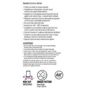 Tappetino antiscivolo per smartphone. Profilo ultra sottile con design registrato. Supporto multi funzione per tenere ben fermi piccoli oggetti come monete, occhiali da sole, chiavi, carta di credito e altro.. Progettato per multi posizioni: cruscotto, tunnel centrale o sul supporto bibite dell'auto. Realizzato in gomma di silicone di alta qualità per garantire un ottimo grip e assorbibilità antivibrazioni. Non scorre, non cade e non slitta. Resistente da -65°C a 200°C di temperatura. Da applicare su una superficie pulita sia piana che curva come il cruscotto, casa, ufficio, barca e altro ancora.. Facile da rimuovere e ri-applicare nella posizione desiderata. Se sporco o con poca aderenza può essere lavato in acqua tiepida per riattivare le caratteristiche originali. Quando rimosso non lascia residui di alcun genere