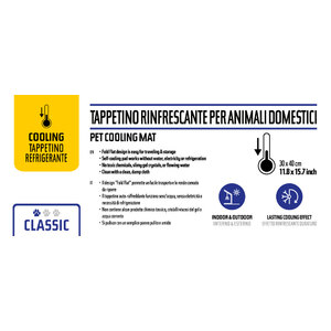 Tappetino rinfrescante per animali domestici. Effetto rinfrescante duraturo. Il design "Fold Flat" permette un facile trasporto e lo rende comodo da riporre. Il tappetino auto-raffreddante funziona senz'acqua, senza elettricità o necessità di refrigerazione. Non contiene alcun prodotto chimico tossico, cristalli viscosi del gel o acqua corrente. Si pulisce con un semplice panno pulito e umido