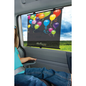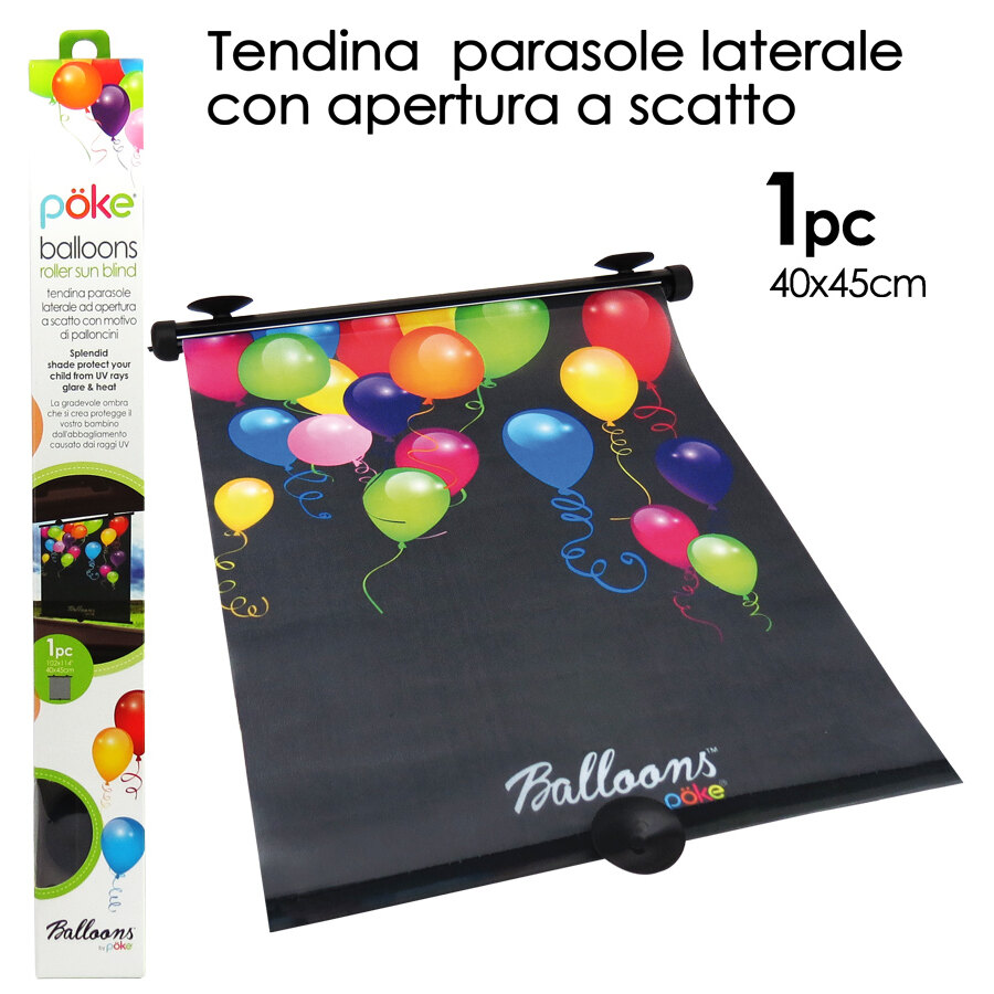 Tendina parasole laterale ad apertura a scatto con motivo di palloncini. Aiuta a proteggere il vostro bambino dal calore e dal riverbero del sole. Perfetta sia per il vetro anteriore che per quello posteriore, il disegno è rivolto verso il bambino. Pratica e utile per bloccare i raggi UV nocivi. Lo splendido design attrae la vista dei neonati. Le ventose assicurano un posizionamento sicuro. E' sufficiente tirarla giù alla lunghezza desiderata per ottenere la protezione dal sole. La dimensione ottimale si adatta alla maggior parte dei veicoli. La rete trasparente offre visibilità sia al guidatore che al passeggero. Aiutano ad abbassare la temperatura all'interno dell'abitacolo. Si arrotola semplicemente schiacciando un bottone. 3 ventose (montate) conformi alla normativa EN-71