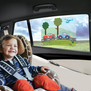 Tendina parasole statica. L'ombra del disegno protegge il tuo bambino dal riflesso e dal calore dei raggi UV. Applicazione immediata al vetro. Disegno allegro e positivo per il tuo bambino. Semi-trasparente per mantenere la visibilità. Protegge dal calore e dal riverbero del sole. Mantiene i raggi UV dannosi distanti dal bambino. Riutilizzabile