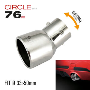 Terminale tondo 89mm, regolabile. Adatto per scarichi con uscita da 45>70mm. Ingresso: 76mm. Lunghezza: 130mm Installazione: raccordo a vite. Design regolabile per adattarsi alle uscite delle marmitte che sono rivolte verso il basso. Acciaio inossidabile di alta qualità. Non necessita di saldature e trapanature. Universale: si adatta alla maggior parte delle uscite delle marmitte. Sistema di fissaggio incluso