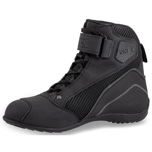 Scarpa estiva realizzata in tessuto microfibra e mesh. Fodera interna in tessuto. Poggiapiedi comfort. Tallone rinforzato. Intarsi in plastica sulla caviglia. Ventilazione efficiente grazie agli inserti in mesh. Protezione leva del cambio in pelle. Suola in gomma antiabrasione. Omologazione: secondo EN 13594: 2017