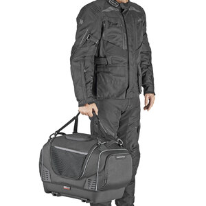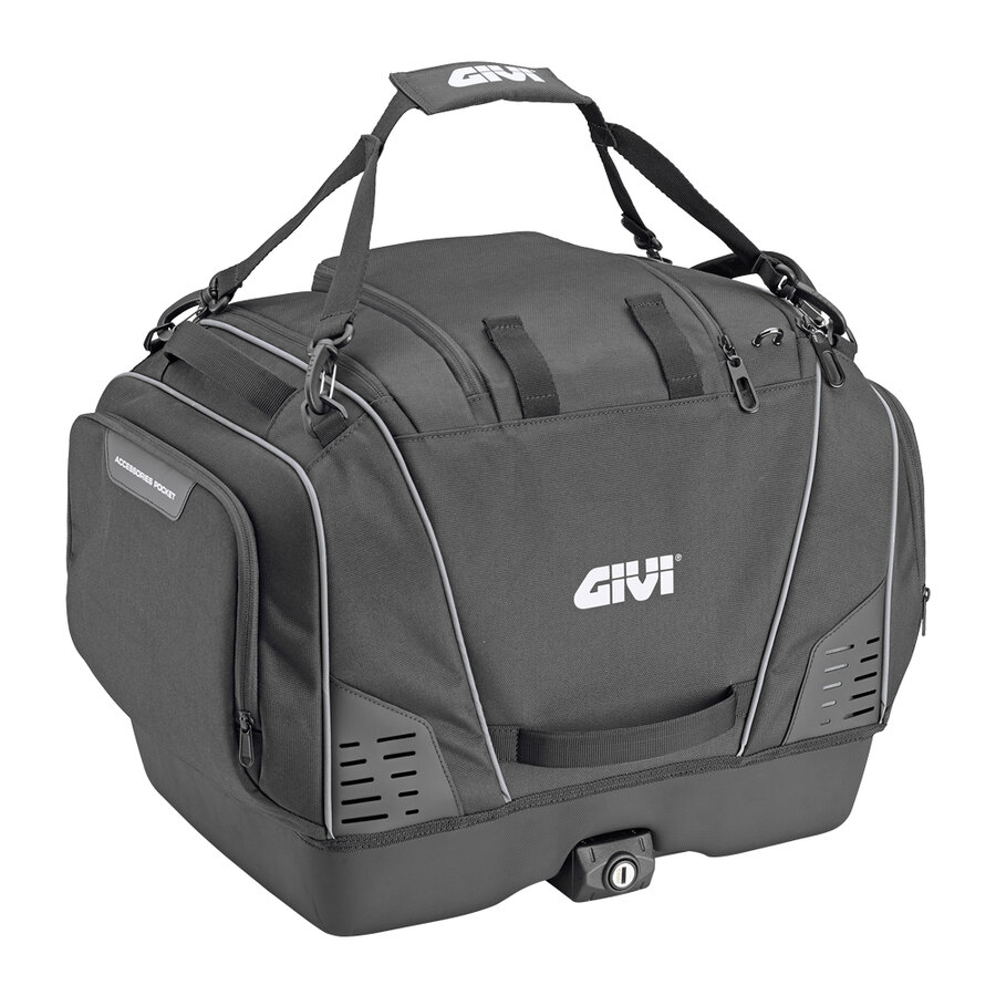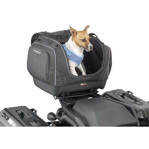 Top bag con attacco Givi Monokey specifica per il trasporto di animali. Progettata per rendere il trasporto di animali domestici sicuro e agevole durante i vostri viaggi in moto. Il design prevede un'apertura sul lato superiore della borsa, pensato appositamente per la testa dell'animale. Ogni dettaglio massimizza il comfort: cuscino interno imbottito rivestito in TPU lavabile, massima traspirabilità, materiali trattati specificamente per riflettere i raggi UV ed evitare l'aumento della temperatura interna. L'attacco Monokey garantisce una facile installazione e rimozione dalla moto. I materiali utilizzati assicurano l'impermeabilità e la massima resistenza, anche sulle lunghe percorrenze. 4 prese d'aria. Apertura superiore arrotolabile. Apertura superiore secondaria a ribalta in rete. 2 tasche esterne laterali. Tasca interna portadocumenti. Cinghia per trasporto a mano. 2 fori per scolo dell'acqua/umidità, posizionati sul fondo della borsa. 3 maniglie ergonomiche. Max load 5kg
