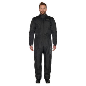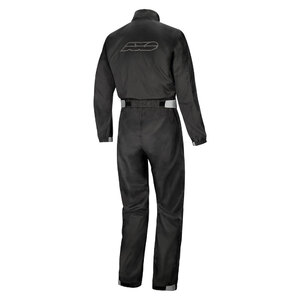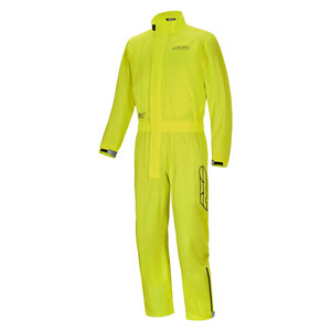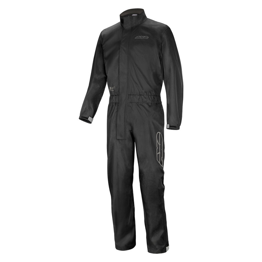 Tuta antipioggia impermeabile, unisex, compatto e leggero. Tuta in materiale "rip-stop", impermeabile, antivento e traspirante. Cuciture interne termo-nastrate. Chiusura frontale anti-infiltrazioni con velcro e zip. Multi regolazioni su polsi, vita e fondo con velcro. Cerniere laterali al fondo, apribili fino al polpaccio per agevolare la vestizione. Loghi AXO riflettenti su torace, schiena e gamba sinistra. Dettagli riflettenti su lacci ai polsi, in vita e al fondo. Confezione a sacchetto di minimo ingombro. Resistenza all'acqua 10.000