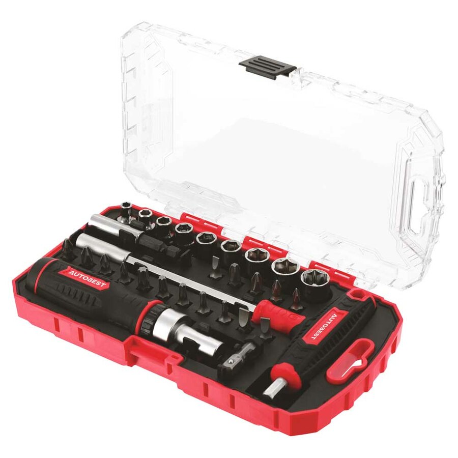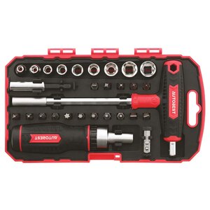Set bussole ed inserti. 29 pezzi. Questo set di utensili ti permetterà di rimuovere viti e dadi in qualsiasi circostanza. Il set include bussole, inserti, un mini cricchetto e molto altro. La confezione include: 1 portainserti con impugnatura a T; 1 adattatore da 1/4-25mm; 1 adattatore magnetico da 1/4-60mm; 1 mini cricchetto; 16 inserti S2 da 1/4-25mm; 4 Phillips PH0-PH1-PH2-PH3; 3 a taglio: 4-5-6mm; 5 Torx: T10-T15-T20-T25-T30; 4 Pozi: PZ0-PZ1-PZ2-PZ3; 9 bussole: 4-5-6-7-8-9-10-11-12mm