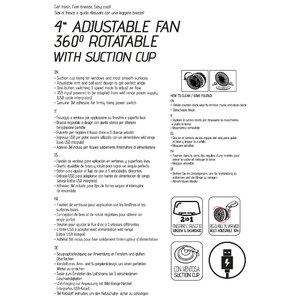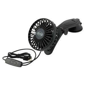 Ventilatore regolabileda 10cm. Girevole 360°. Con fissaggio a ventosa. Fissaggio a ventosa per applicazione su finestrini e superfici lisce. Braccio regolabile con giunto sferico per ottenere l'angolazione perfetta. Pulsante per regolare il flusso d'aria a 3 diverse velocità. Ingresso USB per poter essere utilizzato con un alimentatore wild range (cavo USB integrato)