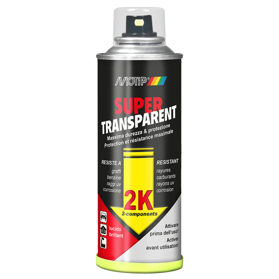 Finitura trasparente altamente protettiva e resistentedi alta qualità professionale. La vernice, combinata con il catalizzatore, offre il massimo della resistenza ai graffi, benzine, agli agenti atmosferici ed ai raggi UV. Grazie alla rapidissima essicazione e all'ottima fluidità è particolarmente adatta per la verniciatura di moto, auto, biciclette, per lavori di modellismo, e come protezione di superfici verniciate o lavori artistici. Applicabile su: metallo, acciaio, alluminio, ottone, rame, superfici cromate ma anche legno e plastiche verniciabili. La superficie precedentemente verniciata deve essere completamente asciutta. Importante: per l'applicazione seguire attentamente le istruzioni