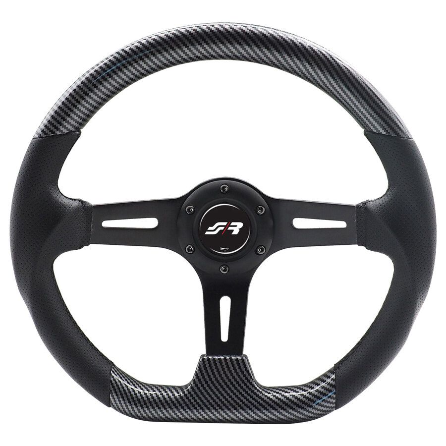 Volante sportivo a calice in ecopelle nera forata e carbon look. Diametro 350mm. Calice 70mm. I volanti Simoni Racing sono stati studiati per migliorare la presa ed aumentare la precisione di utilizzo con un design anatomico dell'impugnatura. Per l'applicazione di un volante sportivo è neccessaria l'installazione del mozzo specifico (il mozzo, specifico per ogni modello di auto, non è incluso nella confezione di vendita del volante). I volanti sportivi sono destinati esclusivamente a veicoli da competizione, non sono omologati per la circolazione stradale. Far installare solo da personale specializzato/esperto
