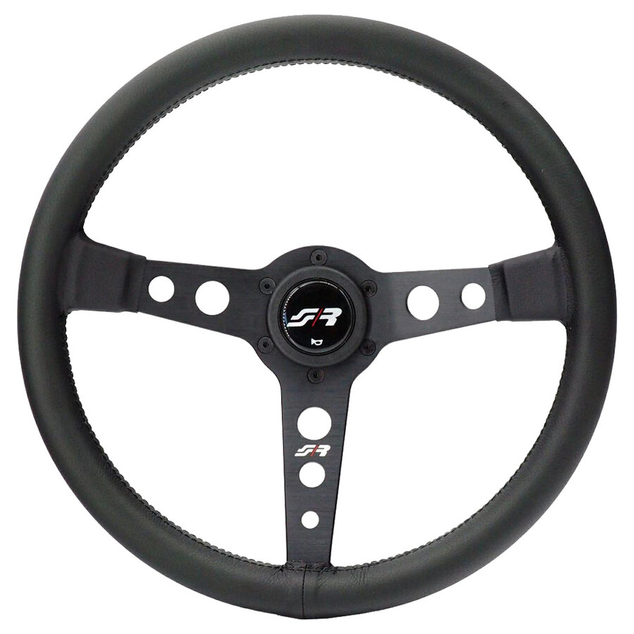 Volante sportivo in ecopelle nera, cucitura nera, diamtero 350mm. A seconda dell'auto dove lo si andrà ad installare, sarà necessario: valutare l'ingombro totale del volante originale e scegliere il diametro giusto; acquistare il mozzo che è specifico per ogni auto (per l'applicazione di un volante sportivo è neccessaria l'installazione del mozzo specifico, il mozzo, specifico per ogni modello di auto, non è incluso nella confezione di vendita del volante, va acquistato separatamente). I volanti sportivi sono destinati esclusivamente a veicoli da competizione, non sono omologati per la circolazione stradale. Far installare solo da personale specializzato/esperto