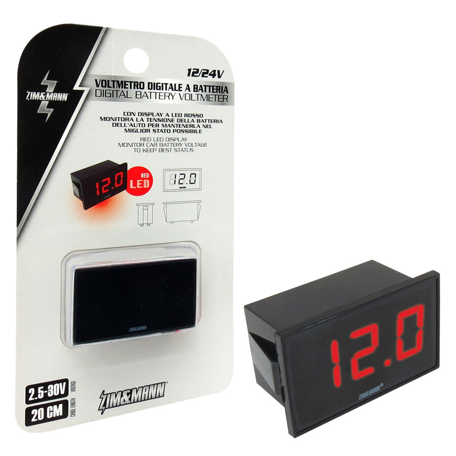 Voltmetro digitale a batteria. Con display a led rosso. Monitora la tensione della batteria dell'auto per mantenerla nel miglior stato possibile. Misurazione del range di tensione: 2.5-30V Permette di capire in anticipo se la batteria vi sta lasciando. Tensione elettrica: 12/24V Dimensioni: 50x30x27mm LCD digitale a colori: rosso. Lunghezza del cavo: 20cm