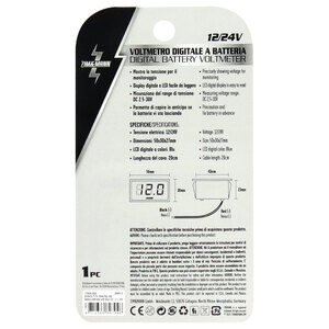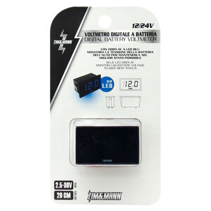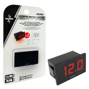 Voltmetro digitale. Con display a led blue. Monitora la tensione della batteria dell'auto per mantenerla nel miglior stato possibile. Misurazione del range di tensione: 2.5-30V Permette di capire in anticipo se la batteria vi sta lasciando. Tensione elettrica: 12/24V Dimensioni: 50x30x27mm LCD digitale a colori: blue. Lunghezza del cavo: 20cm