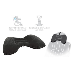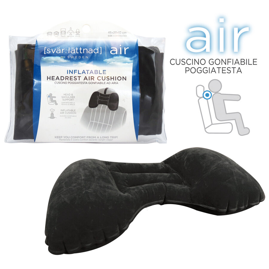 Il design unico offre un grande supporto alla testa e alle spalle. Le strisce in velcro mantengono il poggiatesta ben fissato. Ideale per lunghi viaggi e si adatta perfettamente ad automobili, aerei, treni.. Il materiale floccato è confortevole, morbido e traspirante. La valvola di sicurezza dell'ugello di soffiaggio impedisce la fuoriuscita dell'aria